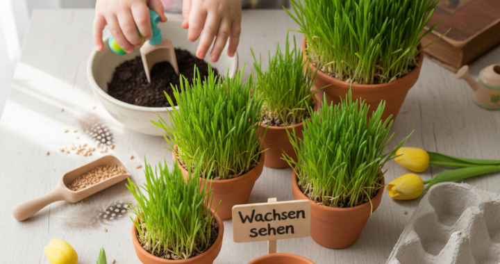 Wenn die ersten Sonnenstrahlen durch die Kursraumfenster blitzen, juckt es uns Kursleitern meistens in den Fingern. Wir wollen den Frühling zu unseren Familien nach Hause bringen. Eines der schönsten und gleichzeitig einfachsten Projekte für Eltern-Kind-Gruppen ist das Säen von echtem Ostergras. Das Thema „Ostergras“ ist perfekt, weil es nicht nur eine Bastelaktion ist, sondern ein echtes Naturerlebnis, das die Sinne anspricht und Geduld (bei den Eltern) sowie Staunen (bei den Kleinen) fördert. „Von kleinen Samen und grünem Staunen“. Die feine Erde oder die glatte Watte an der Haut, das Rascheln der Samenkörner in der Schale und das tägliche Wunder, wenn aus einem harten Korn ein weicher, grüner Halm wird.